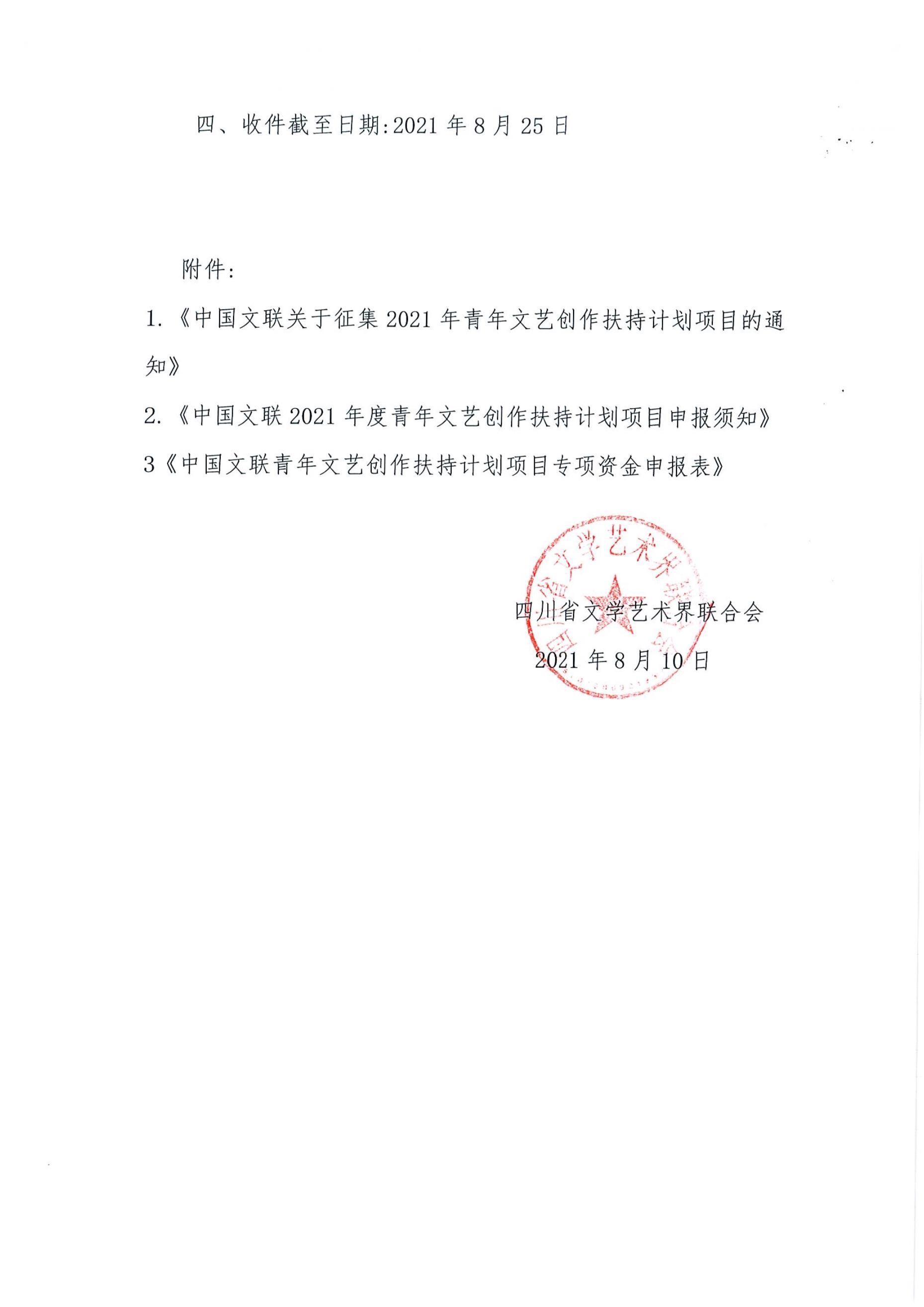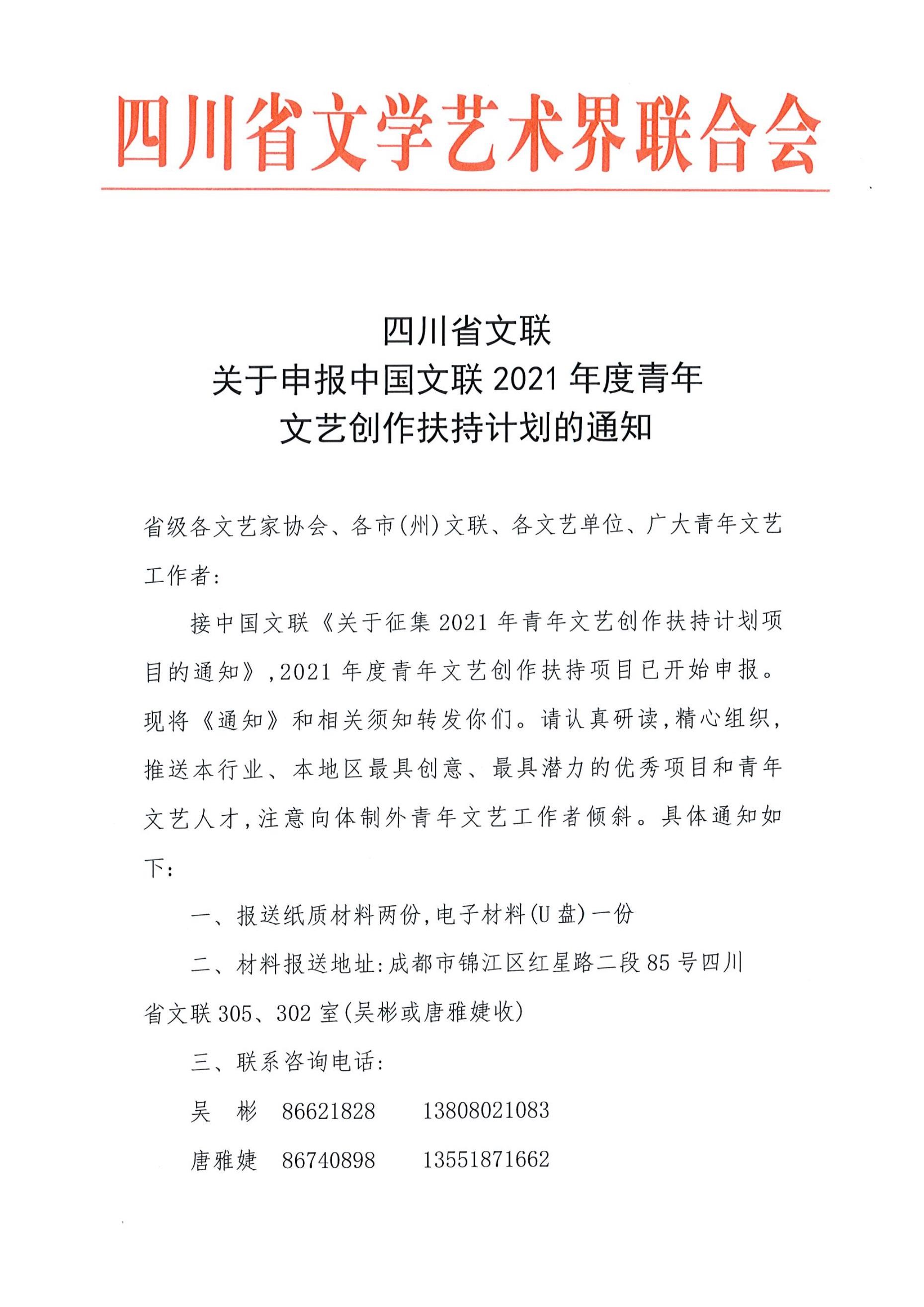 四川省文联关于申报中国文联2021年度青年文艺创作扶持计划的通知